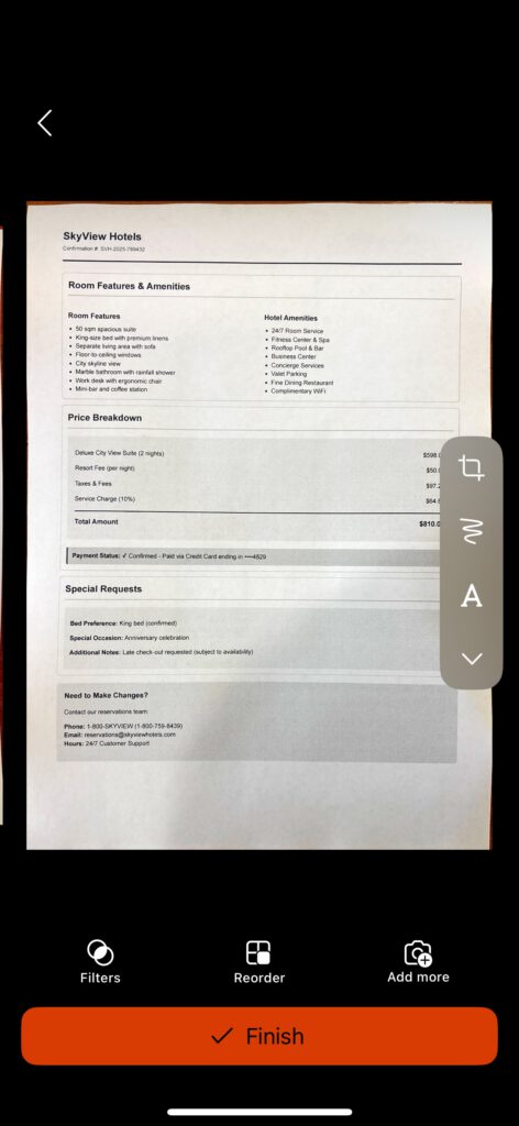 I’ll do a demonstration showing myself scanning a booking confirmation page. Let’s see if you can follow long with the steps below:
