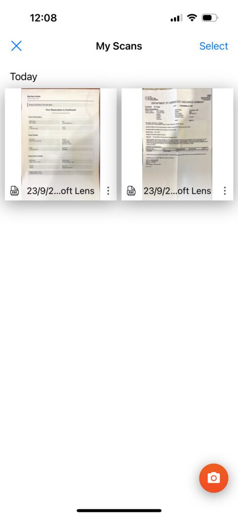 Once it’s installed scanning documents is very simple. Open the Microsoft Lens, it lets you scan documents one page at a time lining them up with the white A4 indicator square.