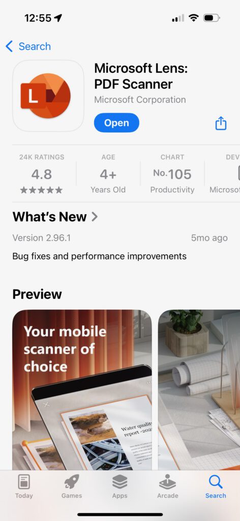 Microsoft Lens, first released in 2014, is a mobile app that makes it easy to scan documents on a phone. It works by giving you a camera-like interface that highlights pages and documents. You can scan or “photograph” multiple pages and export them as a PDF document. Lens is a great alternative to scanning on printers or with older style standalone scanners and in a real sense is easier for us to use. Lens also provides us with the ability to see the output of our scan in real time!